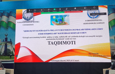 Семинар якунида иштирокчилар ўзларини қизиқтирган саволларга мутахассислардан аниқ ва тушунарли жавоблар олишди, бу эса уларга қайта тикланувчи энергия манбалари (ҚТЭМ) тизимларини жорий этиш истиқболлари доирасида ўз фаолиятларини самарали давом эттиришга ёрдам беради.