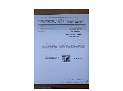 Бугун Бухоро вилоятида “ENTER STEEL KARAKUL” масъулияти чекланган жамияти манзилига металл маҳсулотлари ишлаб чиқариш бўйича йирик саноат лойиҳасига оид бизнес-режа расман топширилди.